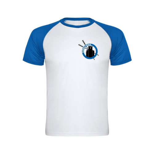 Camiseta técnica transpirable manga corta mangas azules.